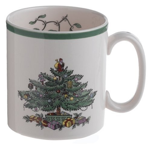 After a holiday meal or on any chilly winter evening, this simple and handsome mug is just what's needed for a warming coffee, seasonal eggnog, or hot cocoa to ward off the chill and bring a glow to the holiday warmth. The mug is made in England of Imperialware, Spode's high-quality earthenware, measures 2-1/2-inches in diameter, and holds 9 ounces of your favorite warm beverage. Like all items in the pattern, the mugs feature the pattern's calling-card Christmas tree design at center; other decorations include a solid green band at the top of the mug, holly, and mistletoe inside the mug. The handle is ample-sized for most hands and arcs inward at both top and bottom to form an ovular grasping area. The mug is safe for the oven, dishwasher, freezer, and microwave, but Place in a cold oven and heat gradually up to 100 degrees C (about 200 degrees F); if using the dishwasher, contact Spode for a list of recommended detergents. --Jeff Dalto